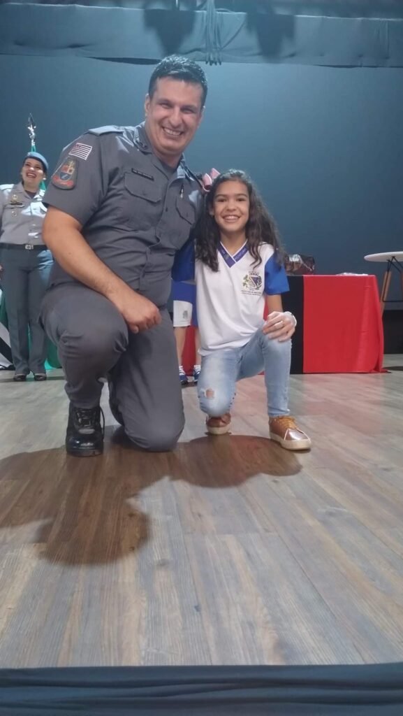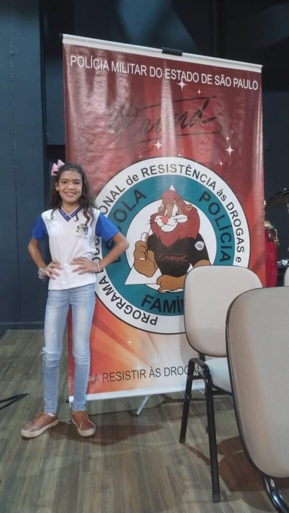 “Foi uma experiência fora de sério. As vezes sou muito boazinha, mas a Mamãe e o Papai me ensina que tenho que saber falar e ouvir o não. E agora com essa experiência toda que vivemos nesses 3 meses de PROERD com o Professor PM Piaza, foi incrível. Aprendi que sempre temos que dizer NÃO AS DROGAS, e, que família é tudo. A entrada do Daren (leão mascote do Proerd), na formatura foi demais, confesso que minha vontade era sair gritando, me dá um abraço Daren!” finalizou a formando Maria Luiza.