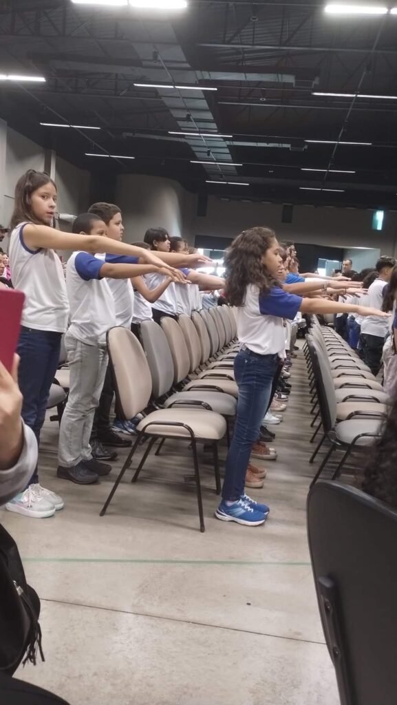 A nossa reportagem falou com a pequena Maria Luiza de 10 anos, do 5° ano do ensino fundamental da escola E.M.E.B. Prof Mário de Moura, ela que participou deste momento tão esperado pelos alunos.
